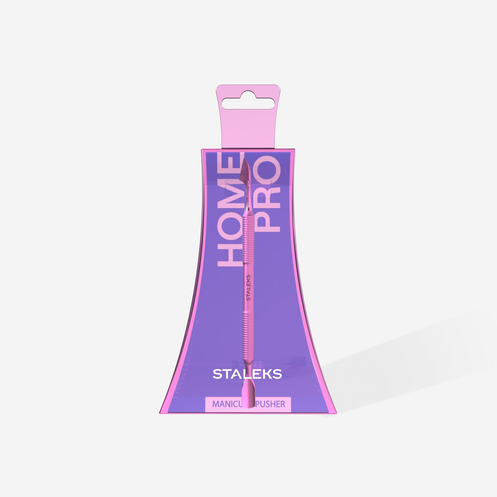 Одна сторона інструменту допомагає м'яко відсунути кутикулу, щоб ніготь виглядав акуратніше та доглянутіше. Пушер має форму, що повторює лінію нігтя, тому зручно прилягає до поверхні та дозволяє діяти обережно і без зайвого тиску.